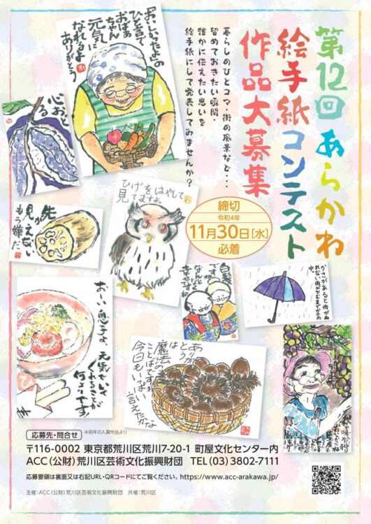 公益財団法人 荒川区芸術文化振興財団(東京都荒川区)では、「第12回 あらかわ絵手紙コンテスト」を開催、作品を募集中です、