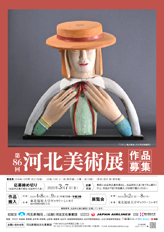 (株)河北新報社、(公財)河北文化事業団(宮城県仙台市)では、「第86回 河北美術展」を開催、作品を募集中です。