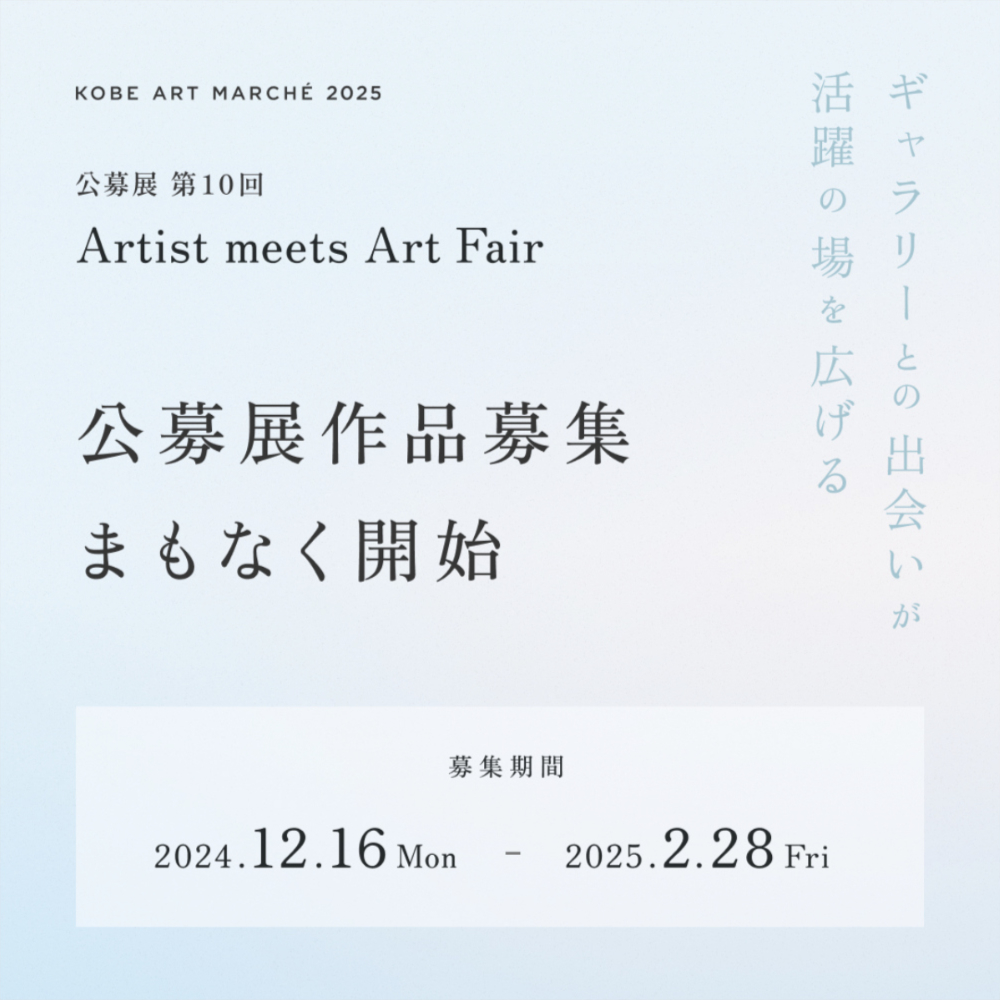 「KOBE ART MARCHÉ 2025」では、次世代を担うアーティストを発掘と支援を目的とした公募展、第10回『Artist meets Art Fair』を開催いたします。