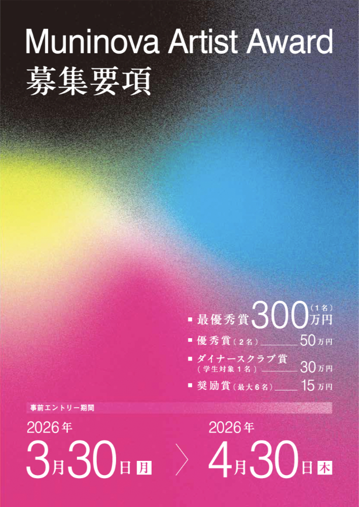 カードローン・キャッシング事業を展開するアイフル株式会社(京都府京都市)では、公募展「Muninova Artist Award」を開催、2026年4月1日時点で、中学生以上の方かつ、日本国内での搬入出と日本語での手続・発送・返却に対応できる方を対象に、2026年3月30日(月)より事前エントリーの受付を開始します。