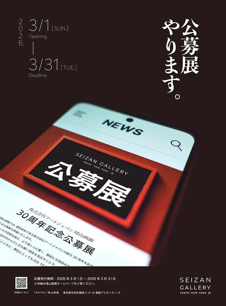 株式会社アートジャパン / 靖山画廊(東京都中央区)では、「靖山画廊(株式会社アートジャパン)30周年記念公募」を開催、2026年3月1日より1次審査用の応募フォームをオープンします。