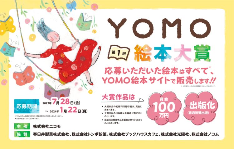 株式会社ニコモ(東京都文京区)では、「第1回 YOMO絵本大賞」を開催、作品を募集中です。
