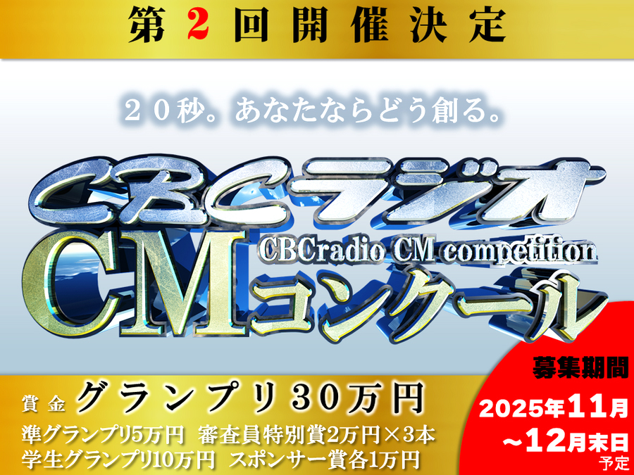 CBCラジオ(株式会社CBCラジオ・愛知県名古屋市)では、「第2回 CBCラジオCMコンクール」を開催、作品を募集中です。