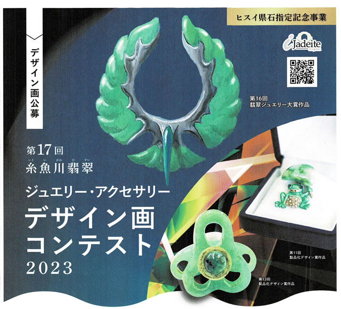 糸魚川翡翠デザイン画コンテスト実行委員会(新潟県糸魚川市)では、「第17回 糸魚川翡翠ジュエリー・アクセサリーデザイン画コンテスト2023」を開催、作品を募集中です。
