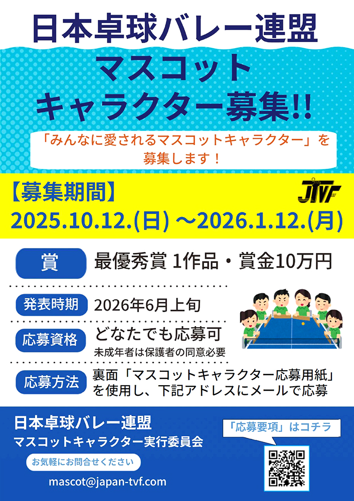 日本卓球バレー連盟 マスコットキャラクター募集要項