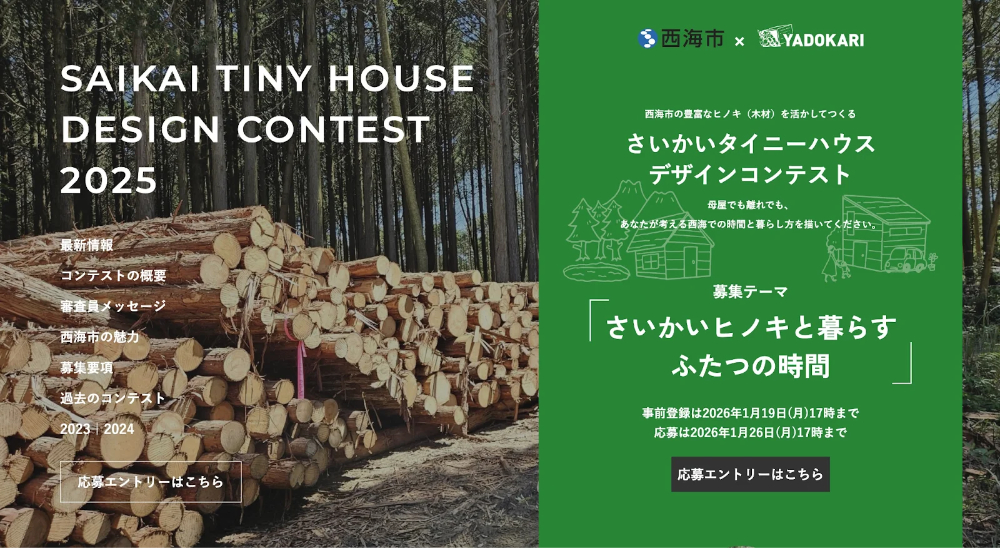 西海市(長崎県)では、「さいかいタイニーハウスデザインコンテスト2025」を開催、作品を募集中です。