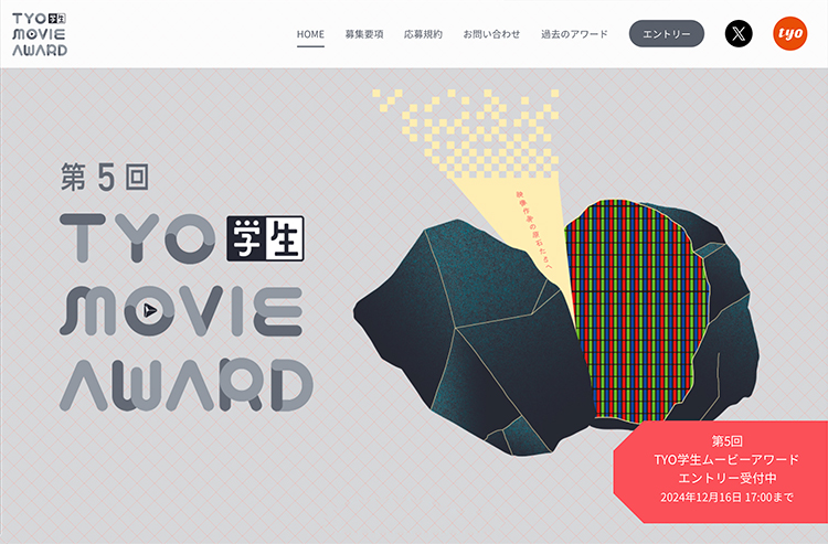 株式会社TYO(東京都港区)では、「第5回 TYO学生ムービーアワード」を開催、2024年現在、18歳以上で、日本国内の各種専修専門学校、短期大学、大学、大学院に在籍する生徒・学生の方を対象に作品を募集中です。