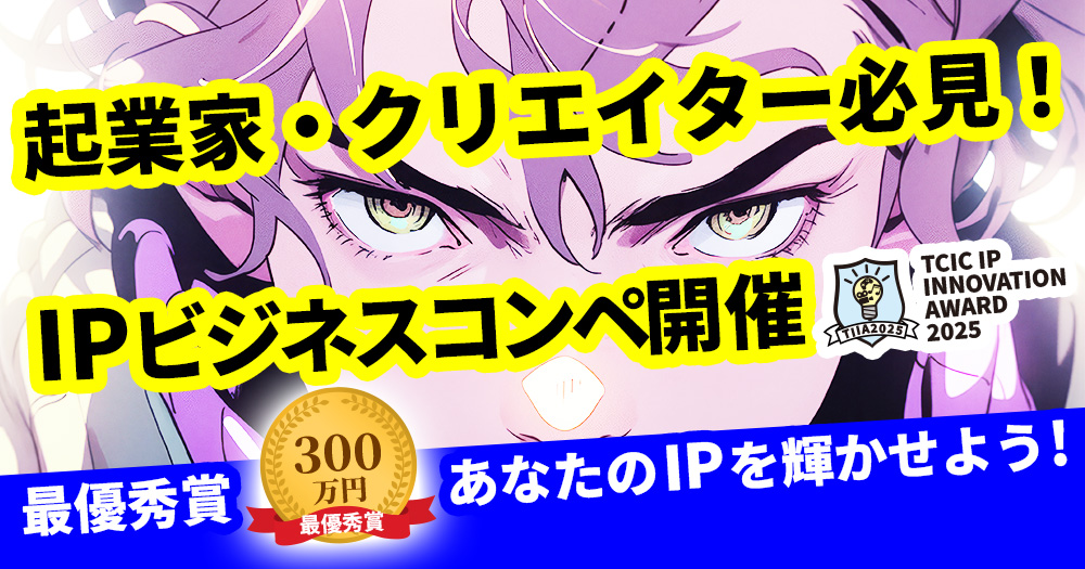 【地域限定公募】起業家・クリエーター必見のビジコン! TCIC IP INNOVATION AWARD 2025[最優秀賞 賞金300万円ほか]