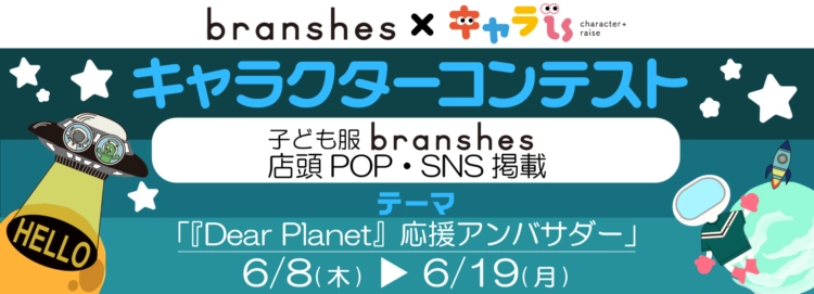 キャラクターの 「描きたい」 と 「欲しい」 をつなぐキャラクター特化型プラットフォーム「キャラis」では、子ども服のブランド「branshes(ブランシェス)」の宇宙シリーズ『Dear Planet』シリーズの応援アンバサダーキャラクターを募集しています。