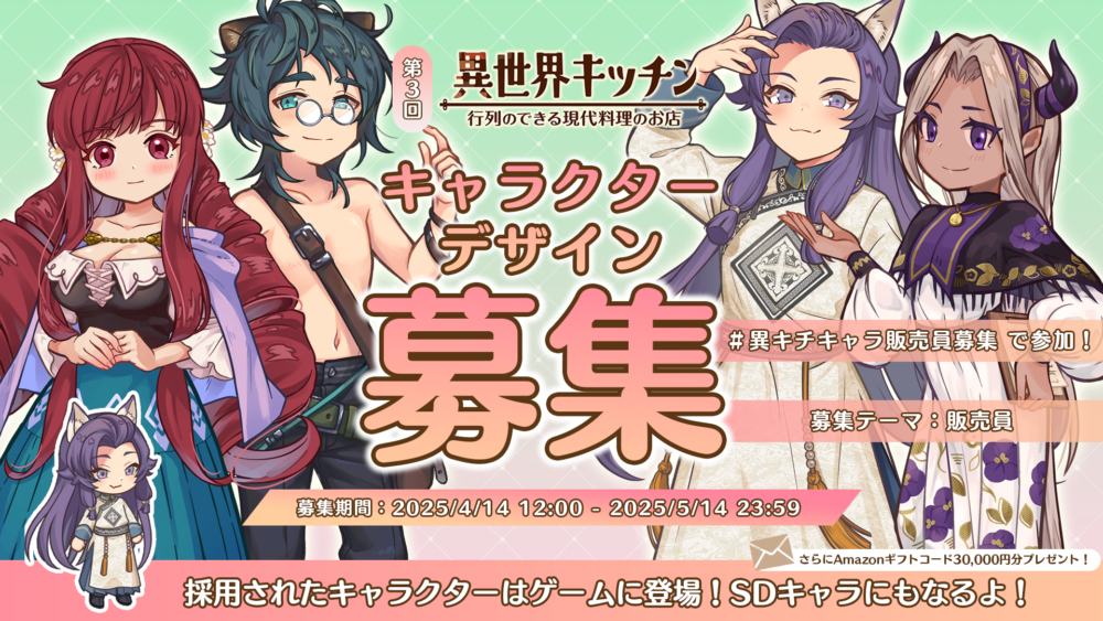 『異世界キッチン』に登場するオリジナルキャラクターを募集します!