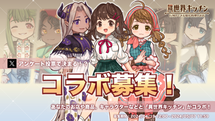 『異世界キッチン 行列のできる現代料理のお店』とコラボするキャラクターを公式Xアカウントにて募集いたします。
