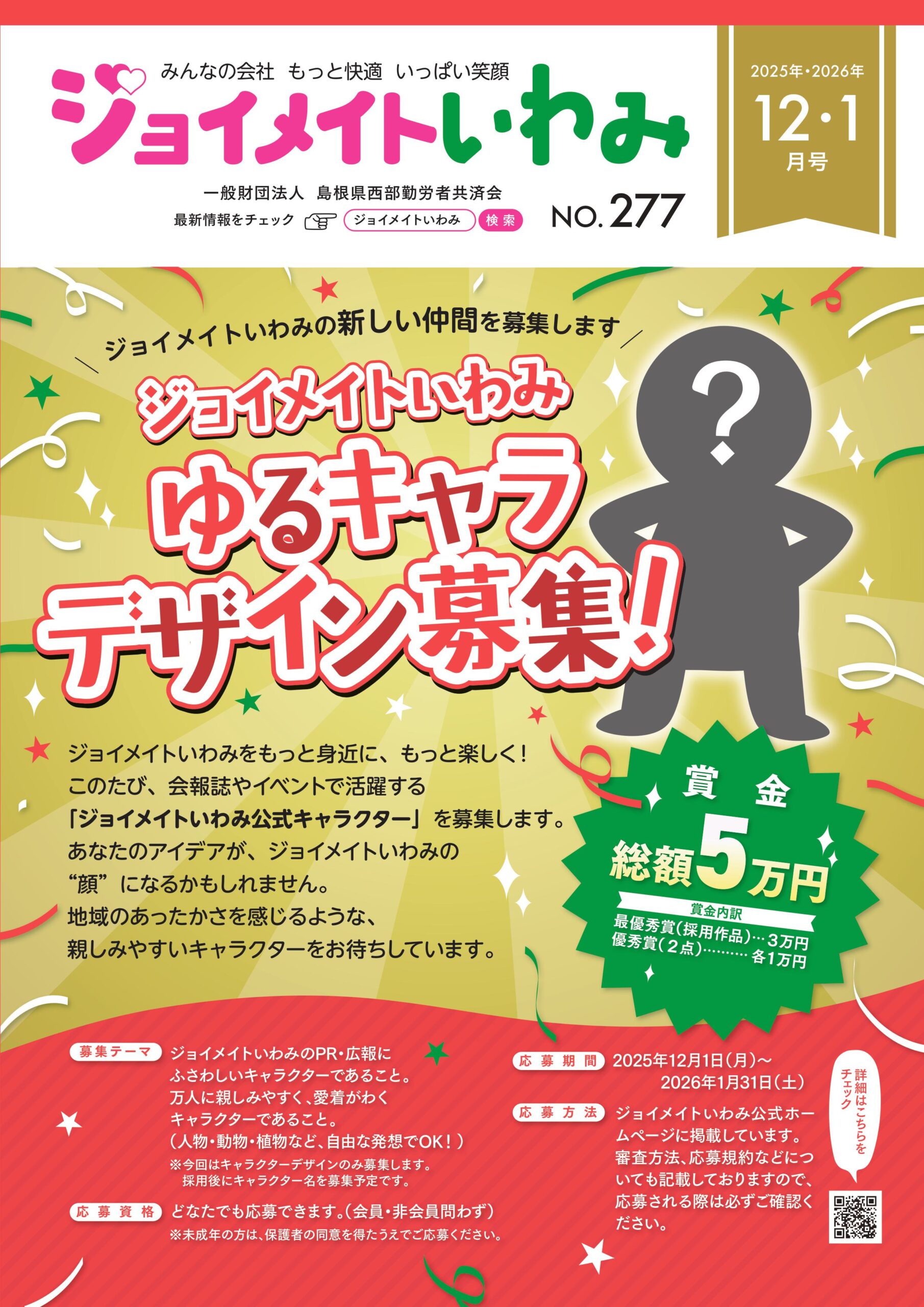ジョイメイトいわみでは、会員や地域のみなさんにより親しみを持ってもらえるよう、会報誌やイベント、SNSなどで活躍するジョイメイトいわみ公式キャラクターを募集します。