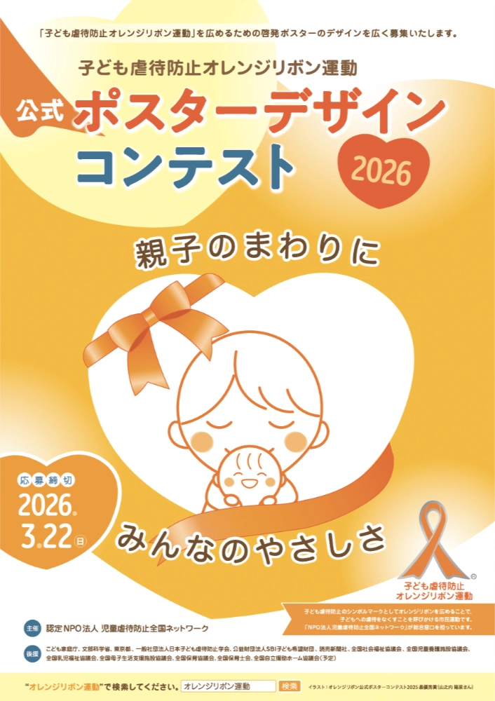 子ども虐待防止 オレンジリボン運動 公式ポスターデザインコンテスト2026(一般部門)作品募集[最優秀賞 賞金10万円 表彰盾]