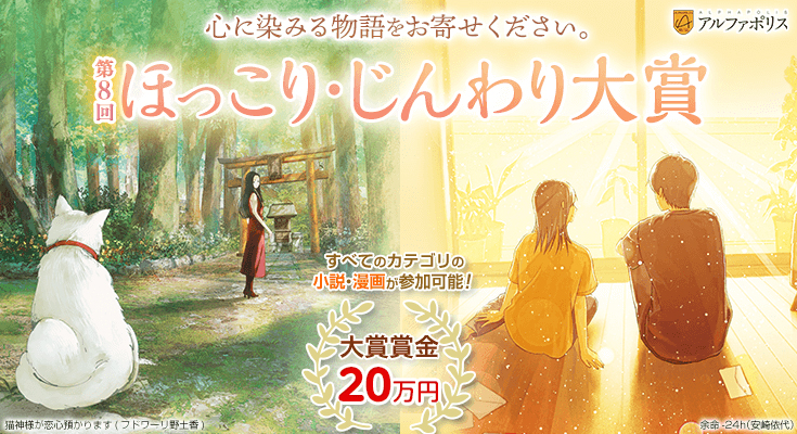 小説・漫画の投稿サイト「アルファポリス」では、「第8回 ほっこり・じんわり大賞」を開催、作品を募集中です。