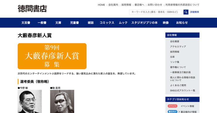 大藪春彦賞選考委員会、株式会社徳間書店(東京都品川区)では、「第9回 大藪春彦新人賞」を開催、作品を募集中です。