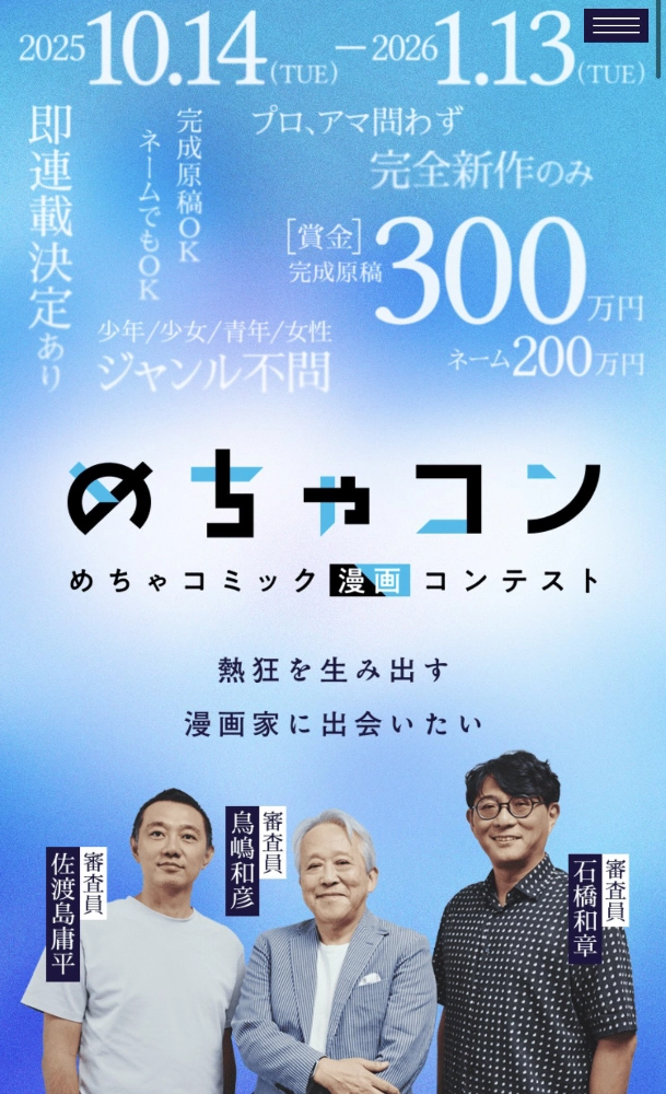 参考:「めちゃコン」特設ページ:審査員と編集部からのメッセージはこちら!🔗