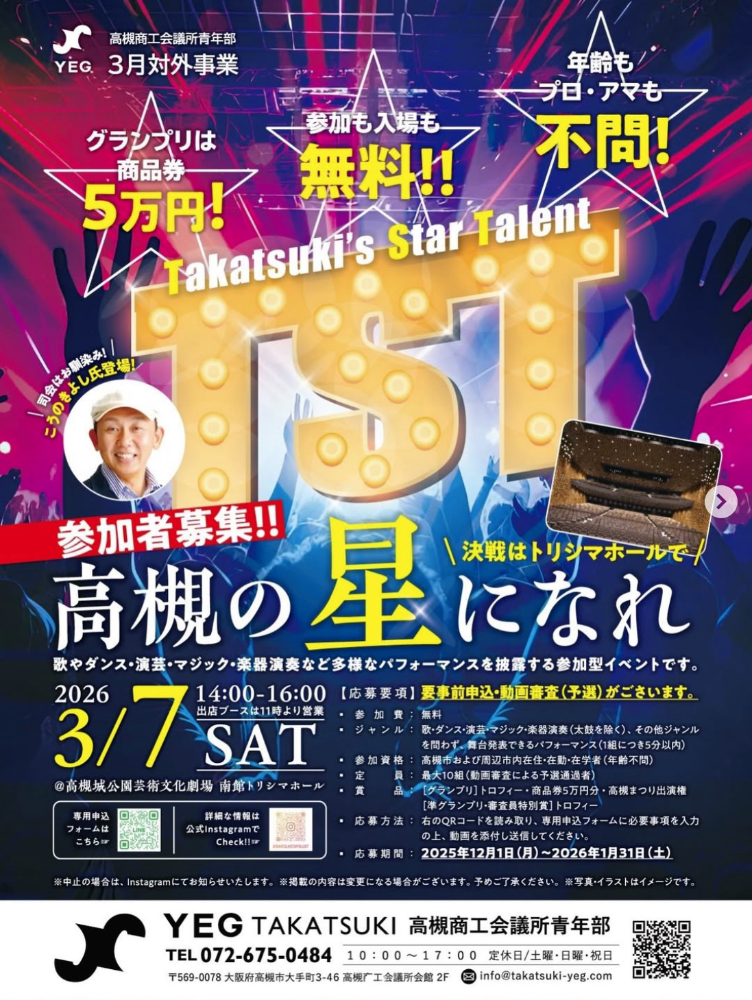 【地域限定公募】Takatsuki Star Talent ~高槻の星になれ~ 参加者募集![グランプリ トロフィー 商品券5万円分 高槻まつり出演権]