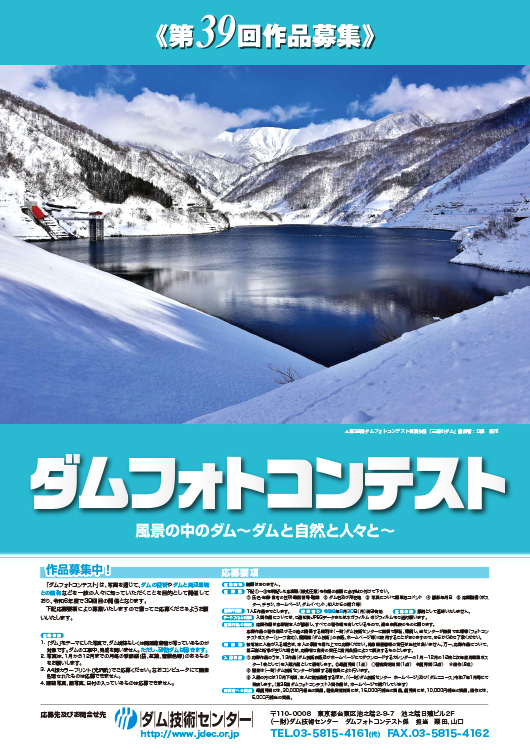 お問い合わせ先:同上 ダムフォトコンテスト係(栗田、山口/TEL:03-5815-4161/FAX:03-5815-4162)
