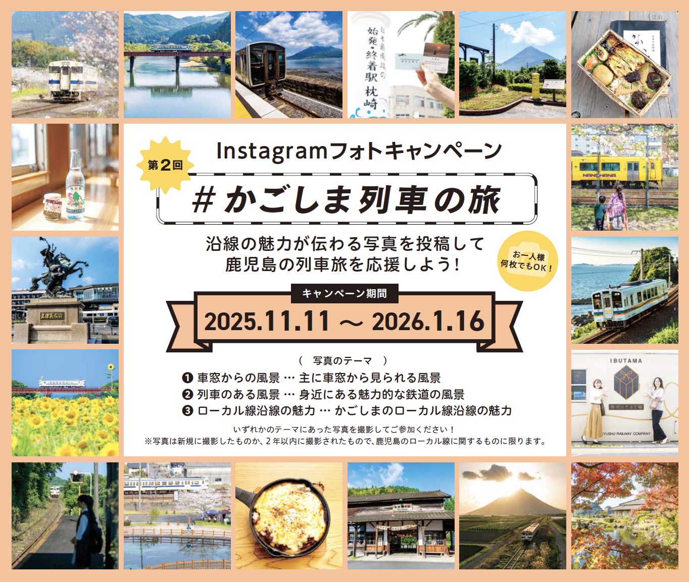 鹿児島県鉄道整備促進協議会(鹿児島県)では、「第2回 かごしま列車の旅Instagramフォトキャンペーン」を開催、作品を募集中です。