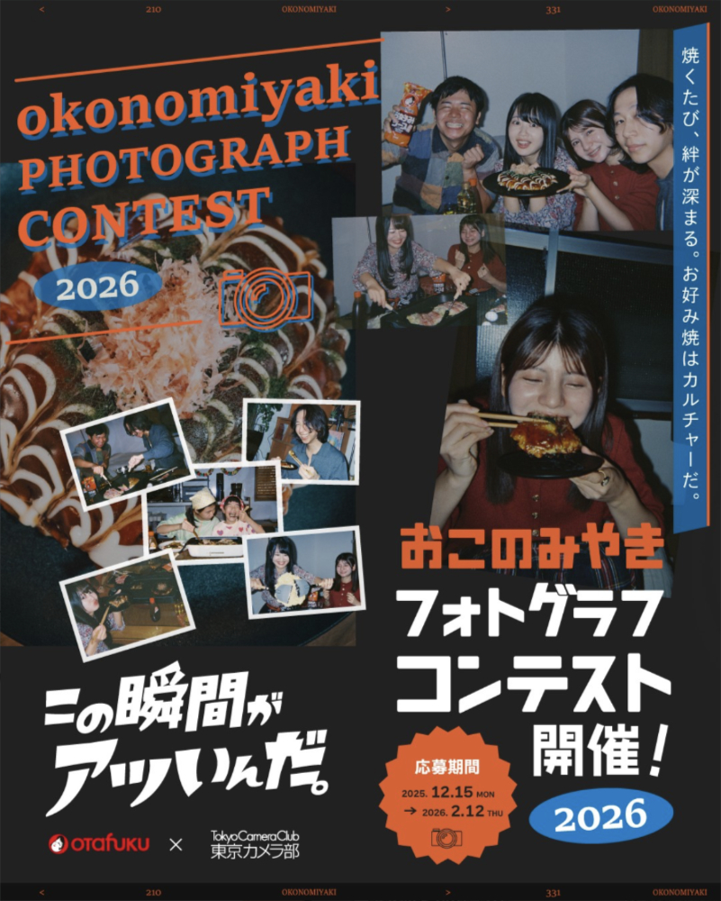 オタフクソース株式会社は、東京カメラ部とのタイアップ企画として、「お好み焼」の“アツい瞬間”をテーマとしたフォトコンテストを開催します。 受賞者には素敵な賞品をプレゼントします!