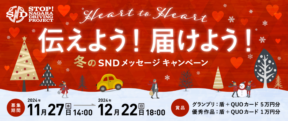 SNDプロジェクトでは、11月27日(水)~12月22日(日)の期間中、「Heart to Heart 伝えよう!届けよう! 冬のSNDメッセージキャンペーン」を開催!