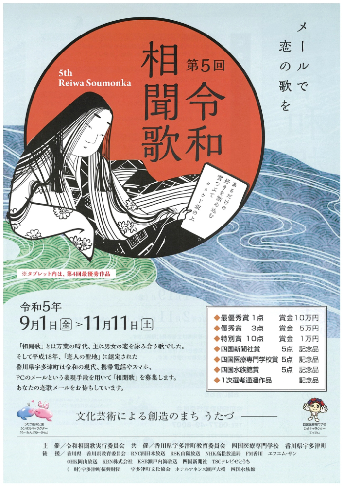 令和相聞歌実行委員会(香川県宇多津町)では、「第5回 令和相聞歌 ~メールで恋の歌を~」を開催、作品を募集中です。